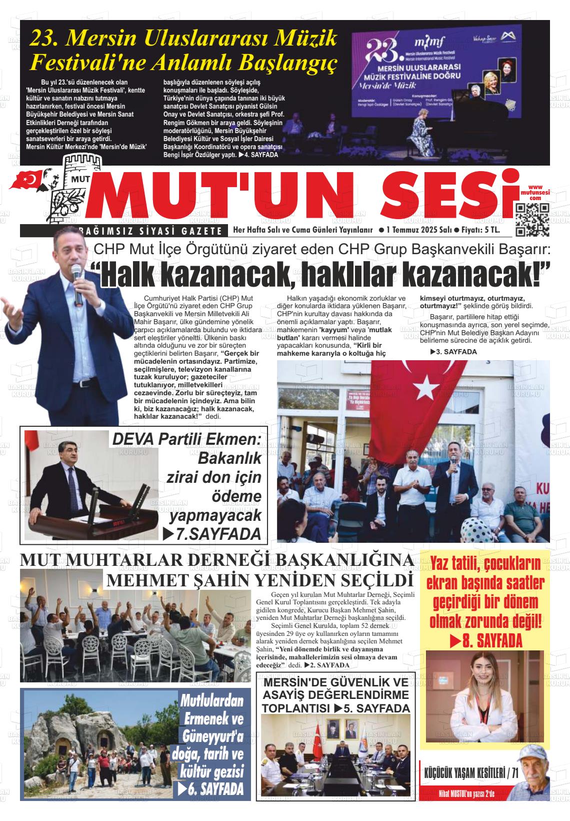 Mersin Yerel Gazeteleri 09 Ocak 2026, Cuma Günü Manşeti